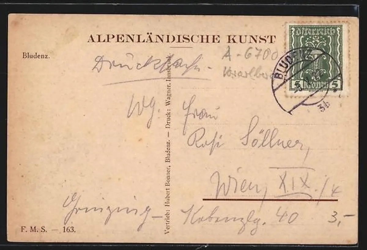 Künstler-AK Bludenz, Teilansicht