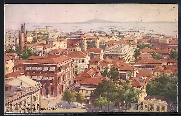 Künstler-AK Bombay, Bird`s Eye View of Fort from Taj Mahal Hotel