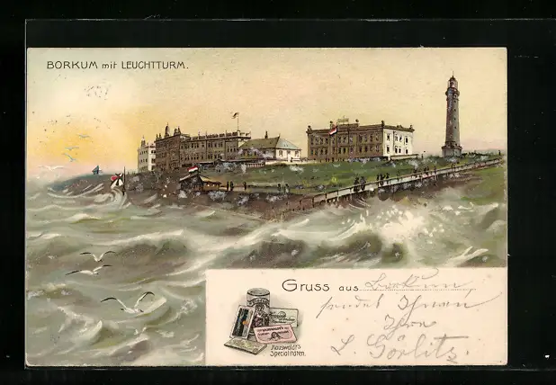 Künstler-AK Borkum, Ansicht mit Leuchtturm