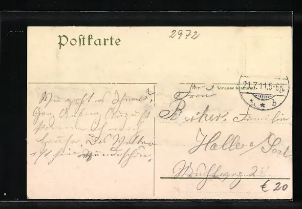 gelaufen 1911, Briefmarke entfernt, guter Zustand