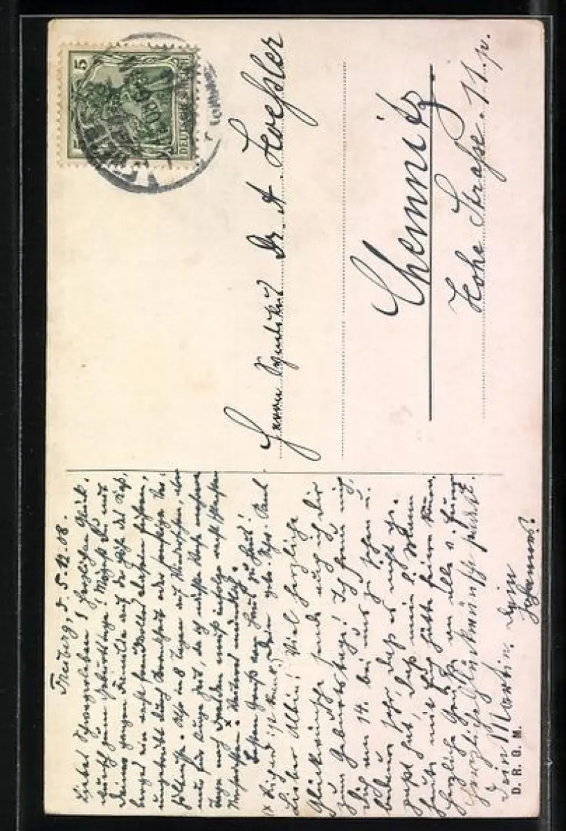 alte Ansichtskarte, gelaufen 1908, Stempelspur, guter Zustand