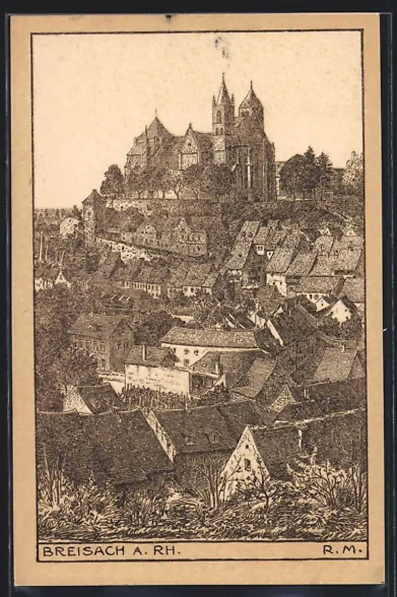 Künstler-AK Breisach a. Rh., Ortsansicht mit Stephansmünster