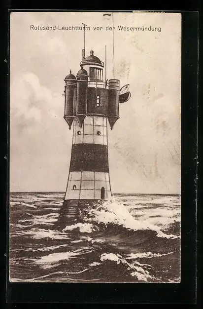Künstler-AK Bremen, Rotesand-Leuchtturm vor der Wesermündung