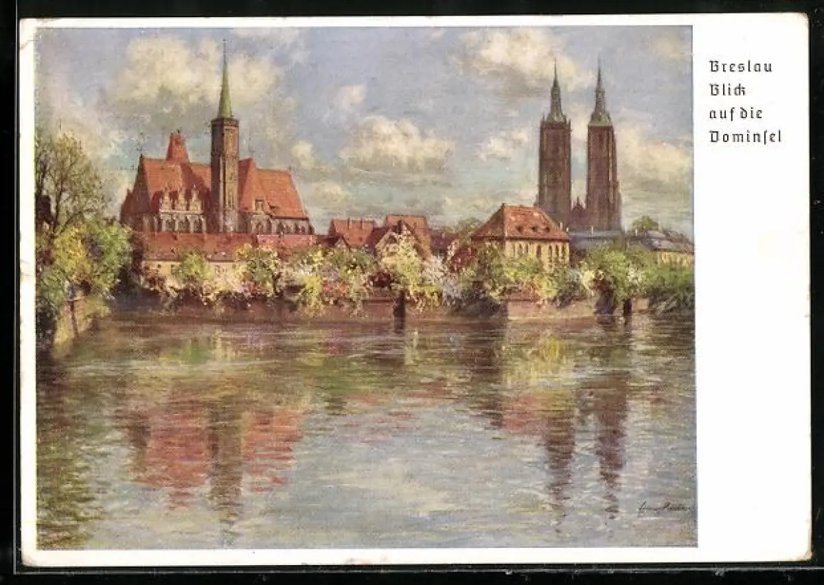 Künstler-AK Breslau, 12. Deutsches Sängerbundesfest 1937, 75-Jahr-Feier des DSB, Blick auf die Dominsel