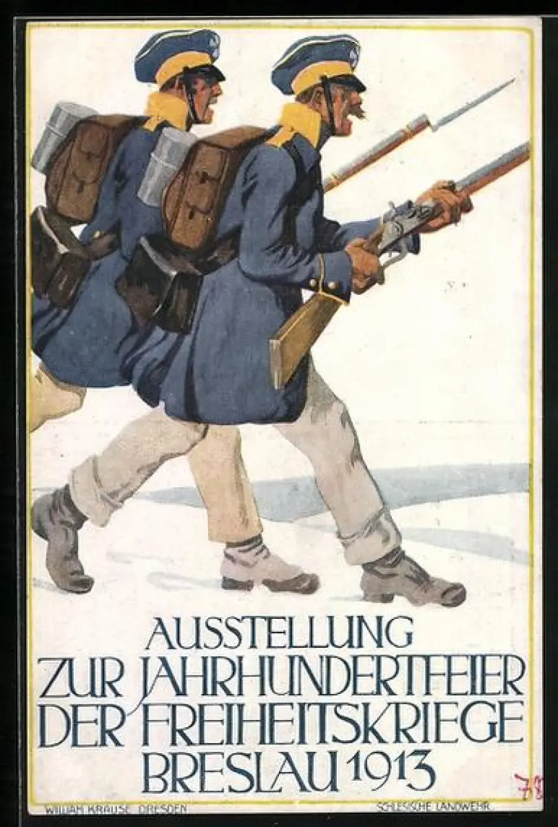 Künstler-AK Breslau, Ausstellung zur Jahrhundertfeier der Freiheitskriege 1913, Schlesische Landwehr