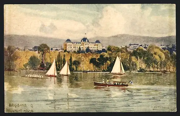 Künstler-AK Brisbane, Flusspartie mit Segelbooten