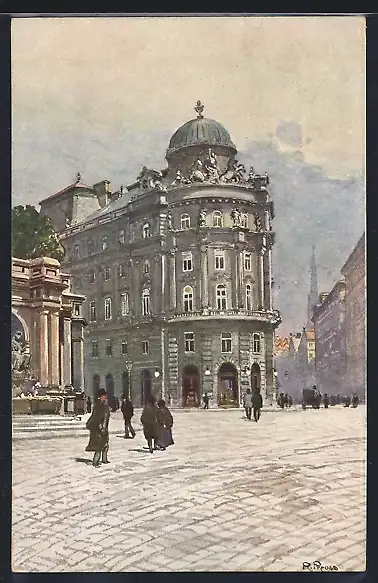 Künstler-AK Brüder Kohn (B.K.W.I) Nr. 104: Rudolf Preuss: Philliphof und Danubiusbrunnen