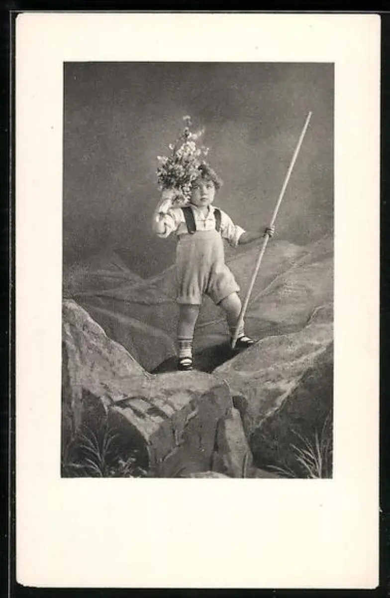 Künstler-AK Brüder Kohn (B.K.W.I) Nr. 242-2: Kleiner Bergsteiger mit Blumen