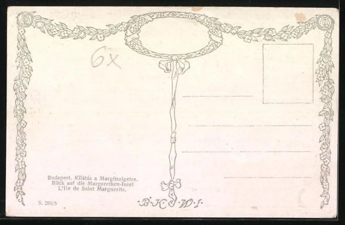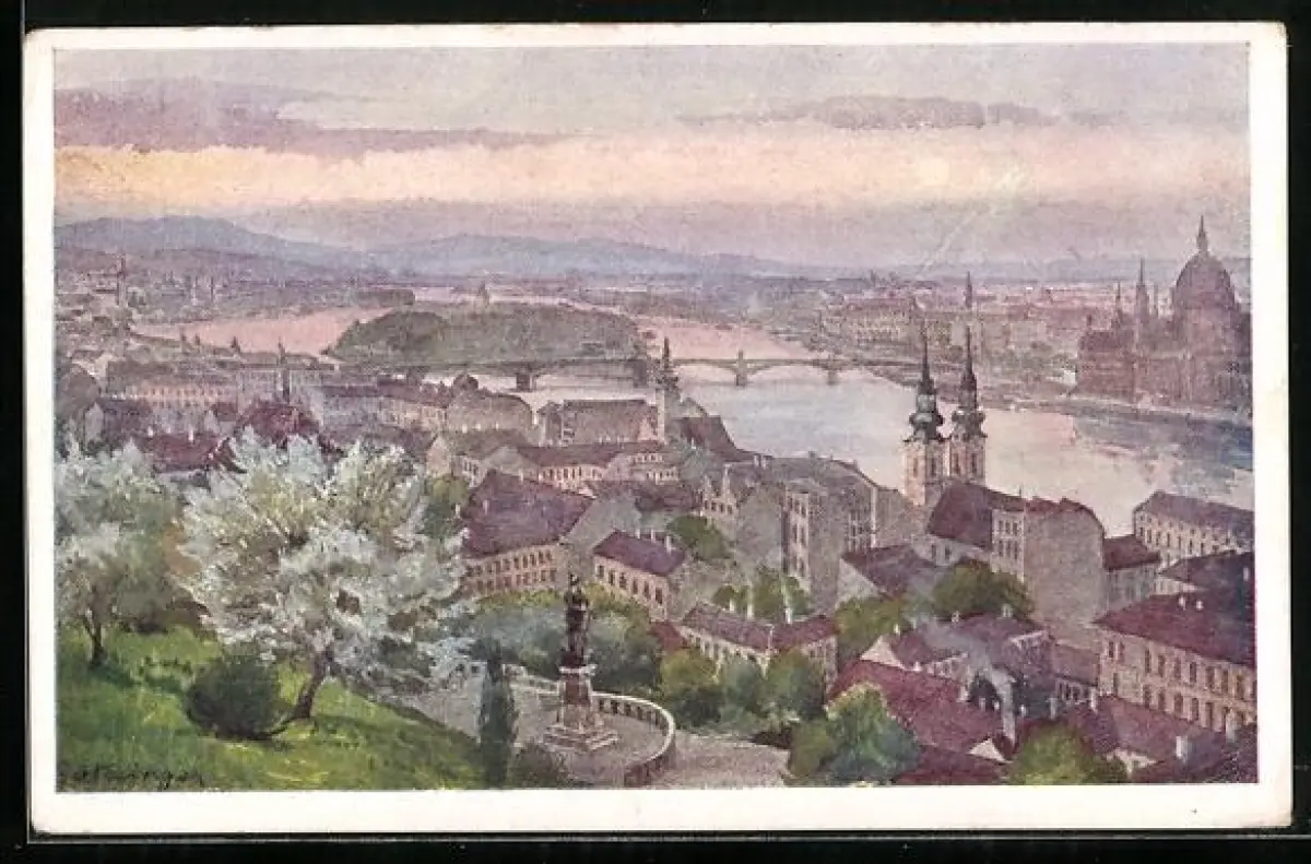 Künstler-AK Brüder Kohn (B.K.W.I) Nr. 280/5: Budapest, Blick auf die Margarethen-Insel
