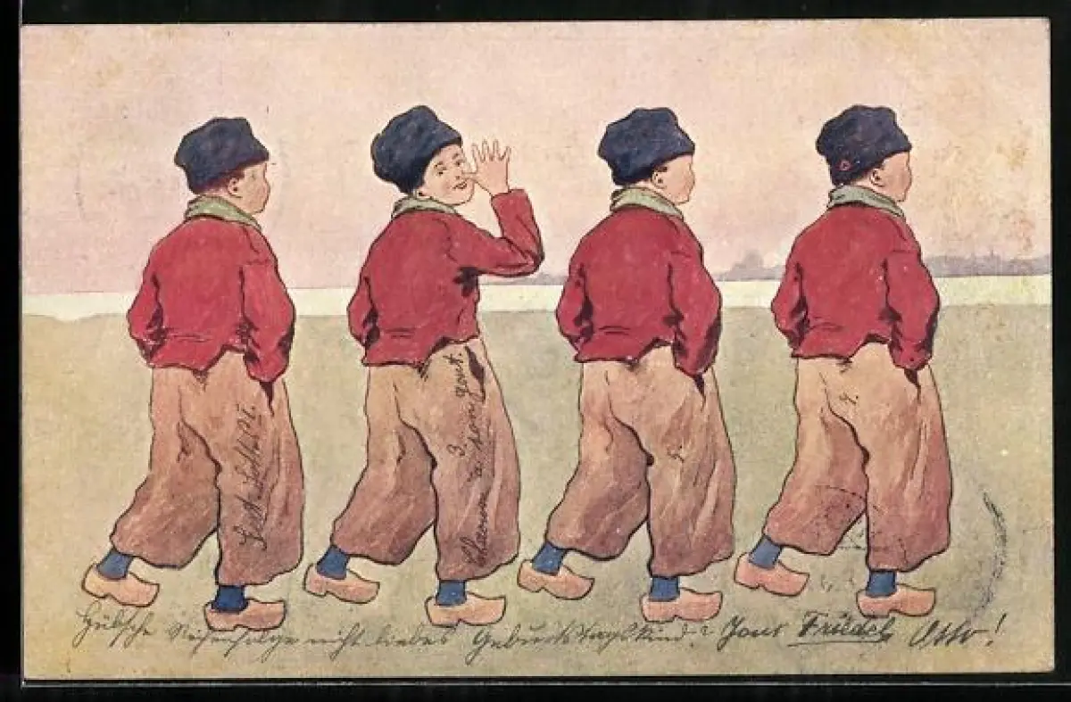 Künstler-AK Brüder Kohn (B.K.W.I) Nr. 648-5: junge Männer in niederländischer Tracht
