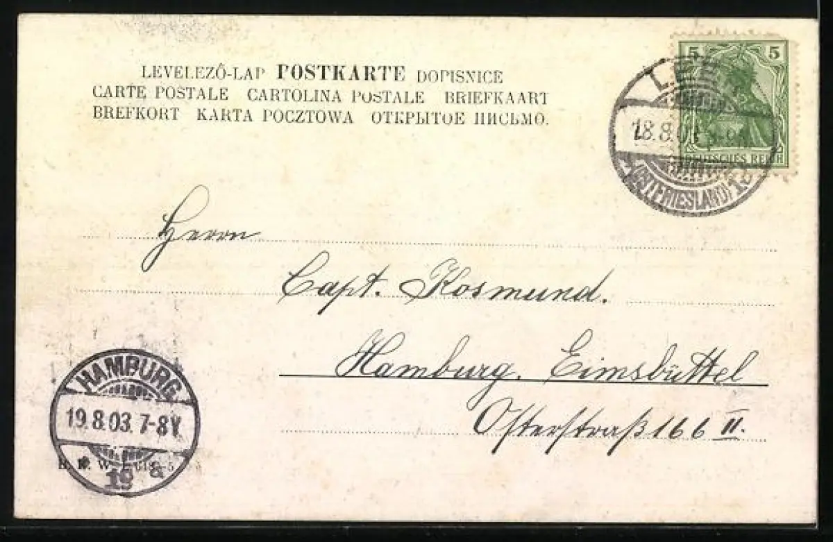 alte Ansichtskarte, gelaufen 1903, Stempelspur, guter Zustand