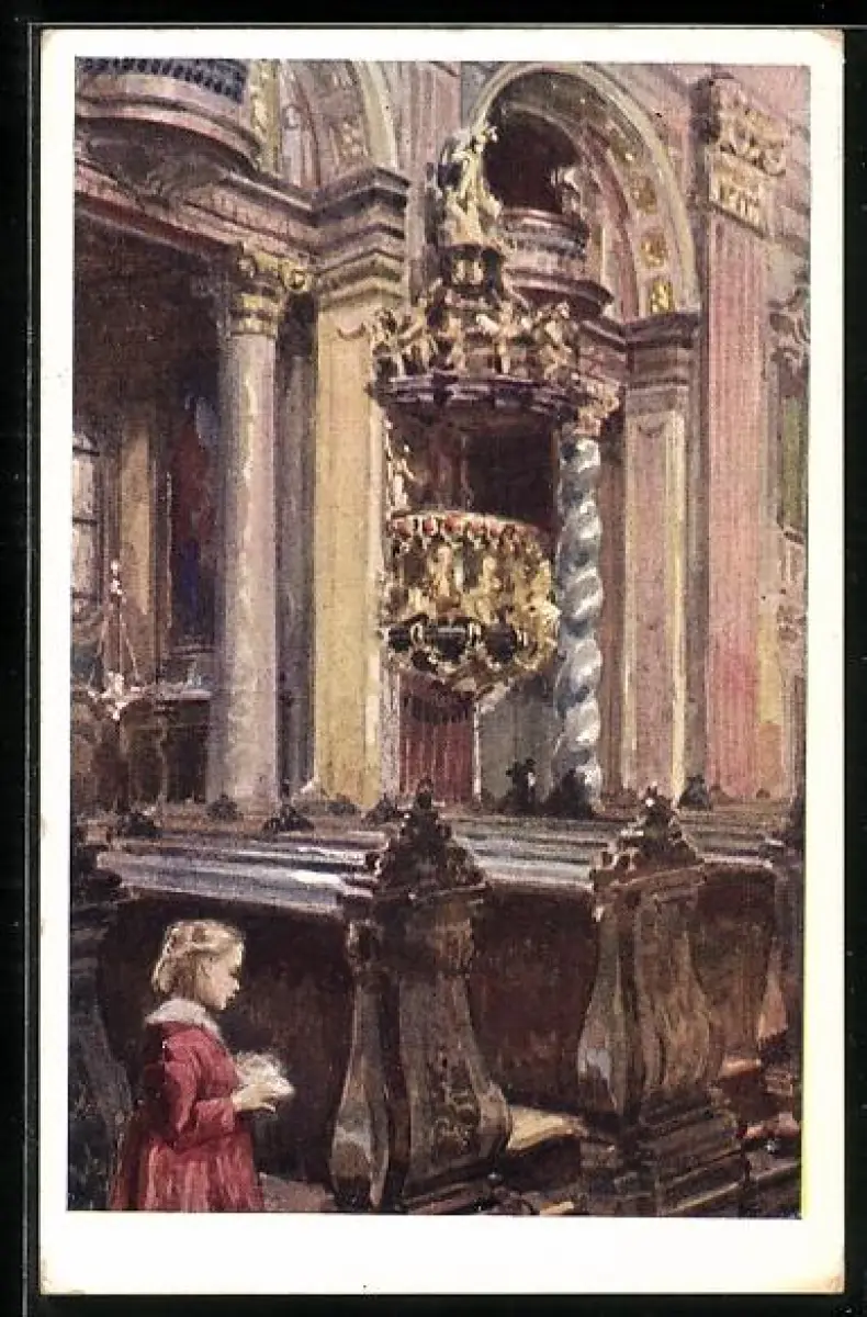 Künstler-AK Brüder Kohn (B.K.W.I) Nr. 762-5: Wien, Junges Mädchen in der Jesuitenkirche