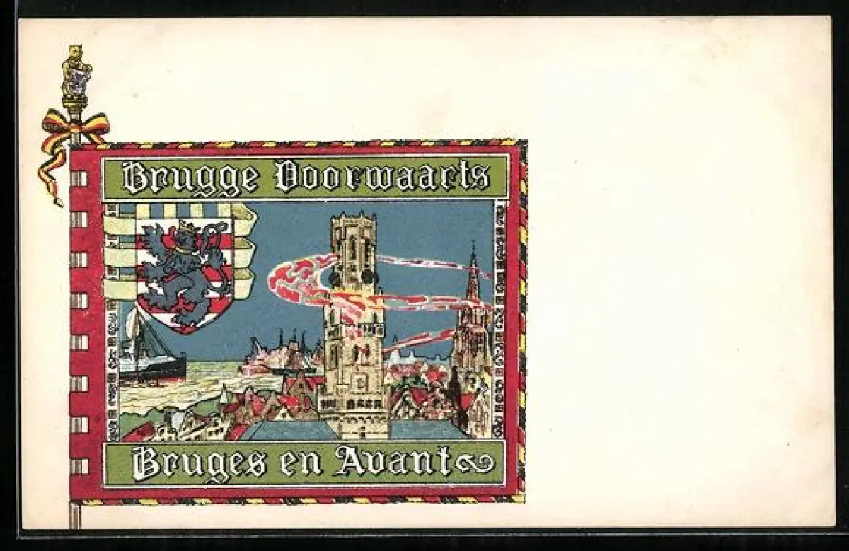 Künstler-AK Brugge, Wappen mit Stadtansicht