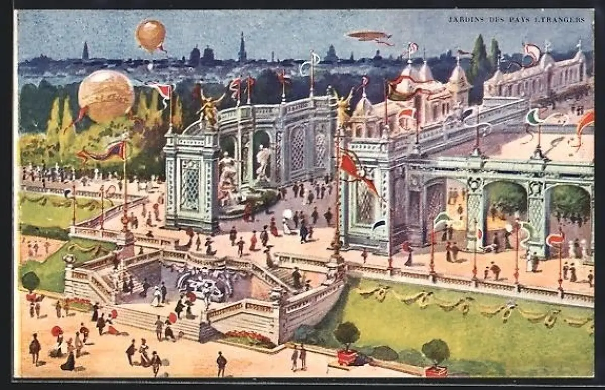 Künstler-AK Bruxelles, Exposition Universelle et Internationale 1910, Zeppelin am Horizont