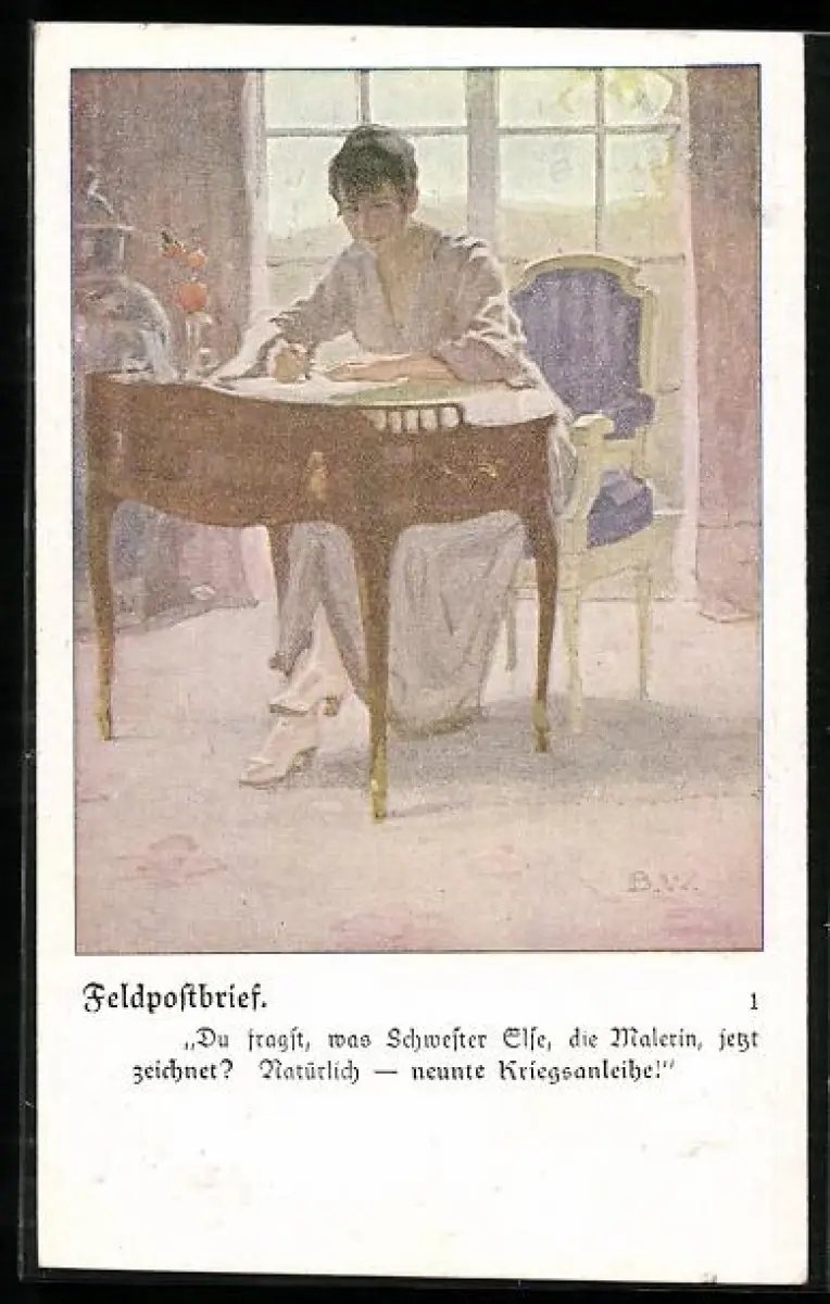 Künstler-AK Brynolf Wennerberg: Frau schreibt einen Brief an ihren Mann über die Kriegsanleihe
