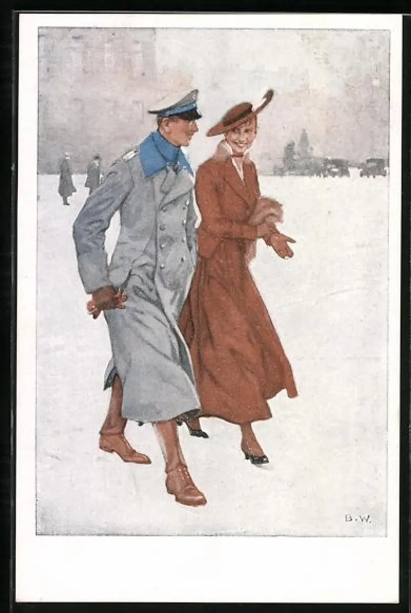 Künstler-AK Brynolf Wennerberg: Renommierbummel, Soldat geht mit einer eleganten Dame spazieren