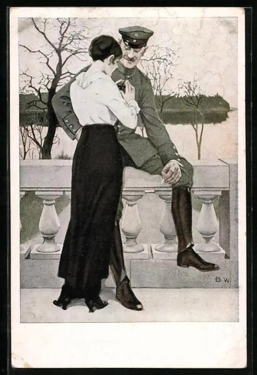 Künstler-AK Brynolf Wennerberg: Soldat mit seiner Liebsten auf Urlaub