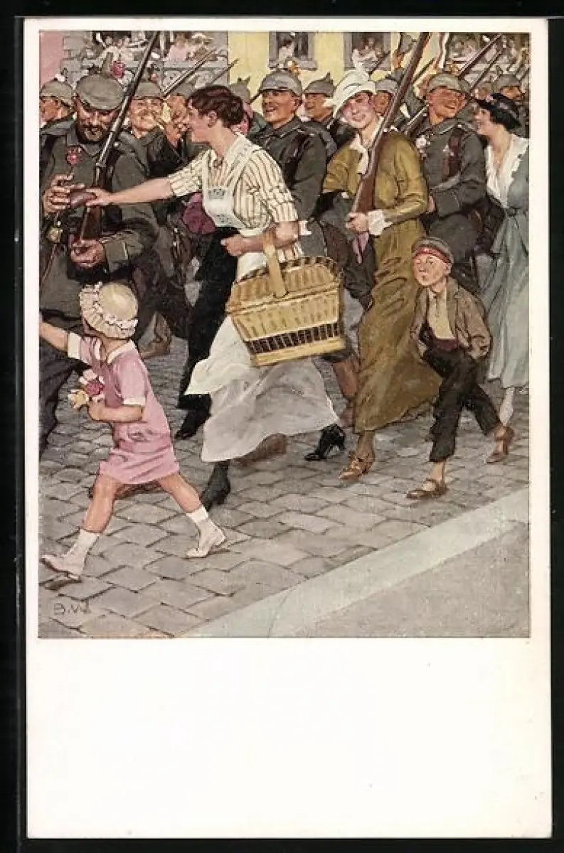 Künstler-AK Brynolf Wennerberg: Soldaten beim Ausmarsch in übermütiger Stimmung