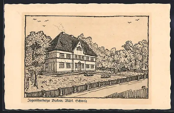Künstler-AK Buckow /Märk. Schweiz, Blick auf die Jugendherberge
