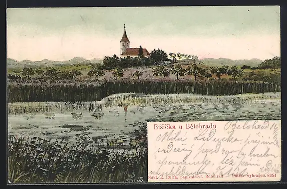 Künstler-AK Bysicky, Uferpartie mit Kirche
