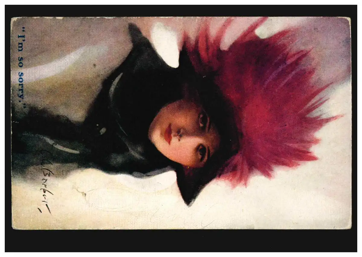 Künstler-AK C. Barber: I'm so sorry - Frau mit rotem Hut, beschriftet