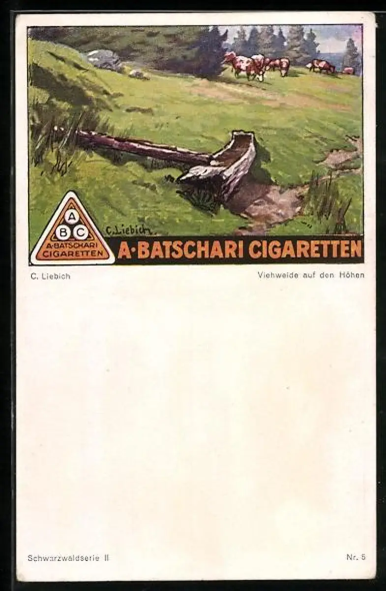 Künstler-AK C. Liebich: A. Batschari Cigaretten, Viehweide auf den Höhen