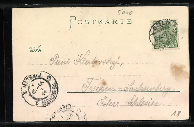 alte Ansichtskarte, gelaufen 1901, Eckknick li. oben, guter Zustand