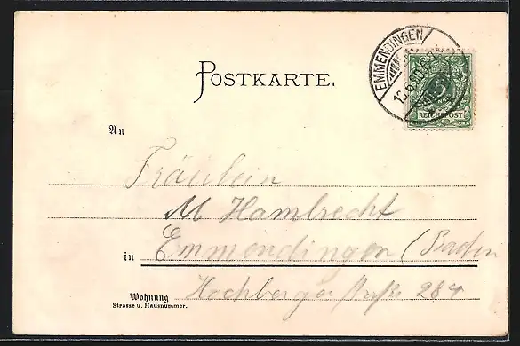 alte Ansichtskarte, gelaufen 1899, guter Zustand