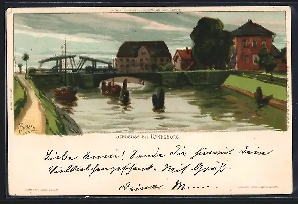 Künstler-AK C.Biese: Rendsburg, Schleuse