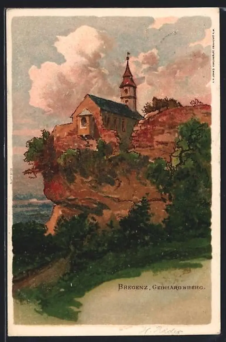 Künstler-AK Carl Biese: Bregenz, Gebhardtsberg mit Kirche