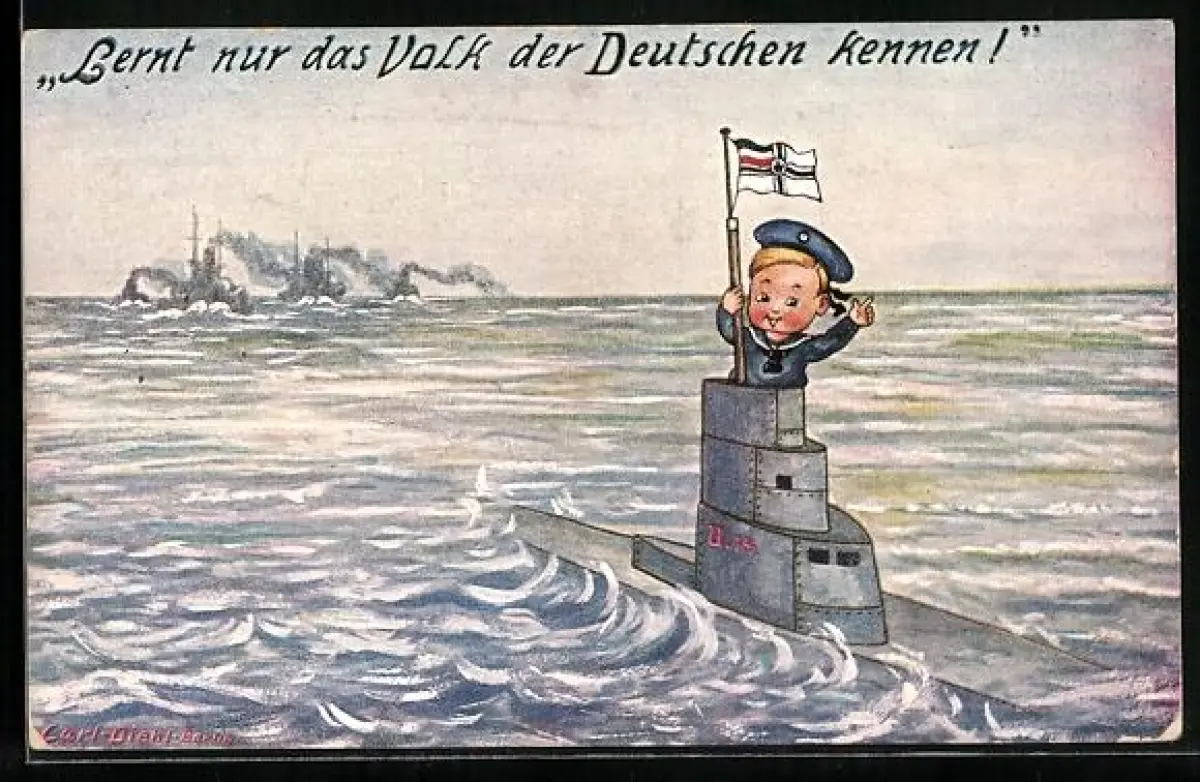 Künstler-AK Carl Diehl: Lernt nur das Volk der Deutschen kennen!, 1. Weltkrieg, U-Boot