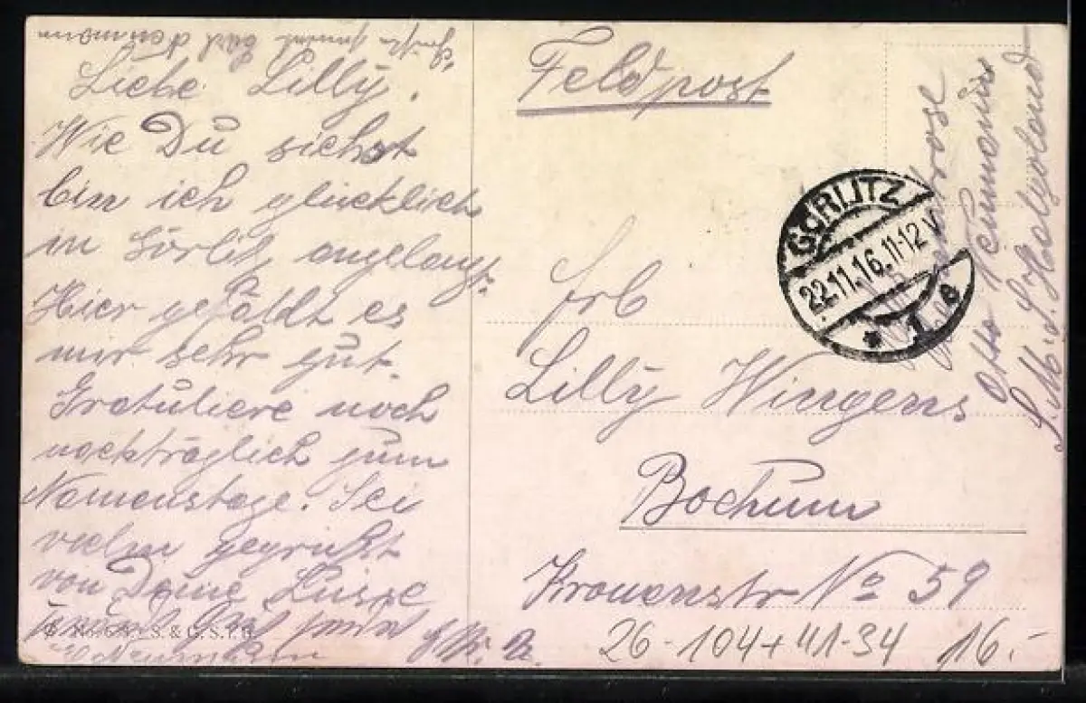 alte Ansichtskarte, gelaufen 1916 als Feldpost, Eckknick rechts unten, guter Zustand