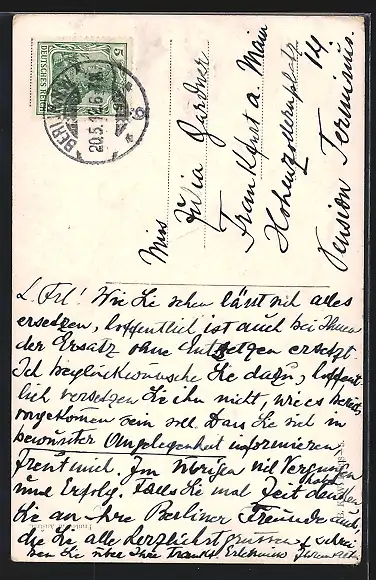 gelaufen 1912, Eckschaden li. oben, Eckknick li. unten, guter Zustand