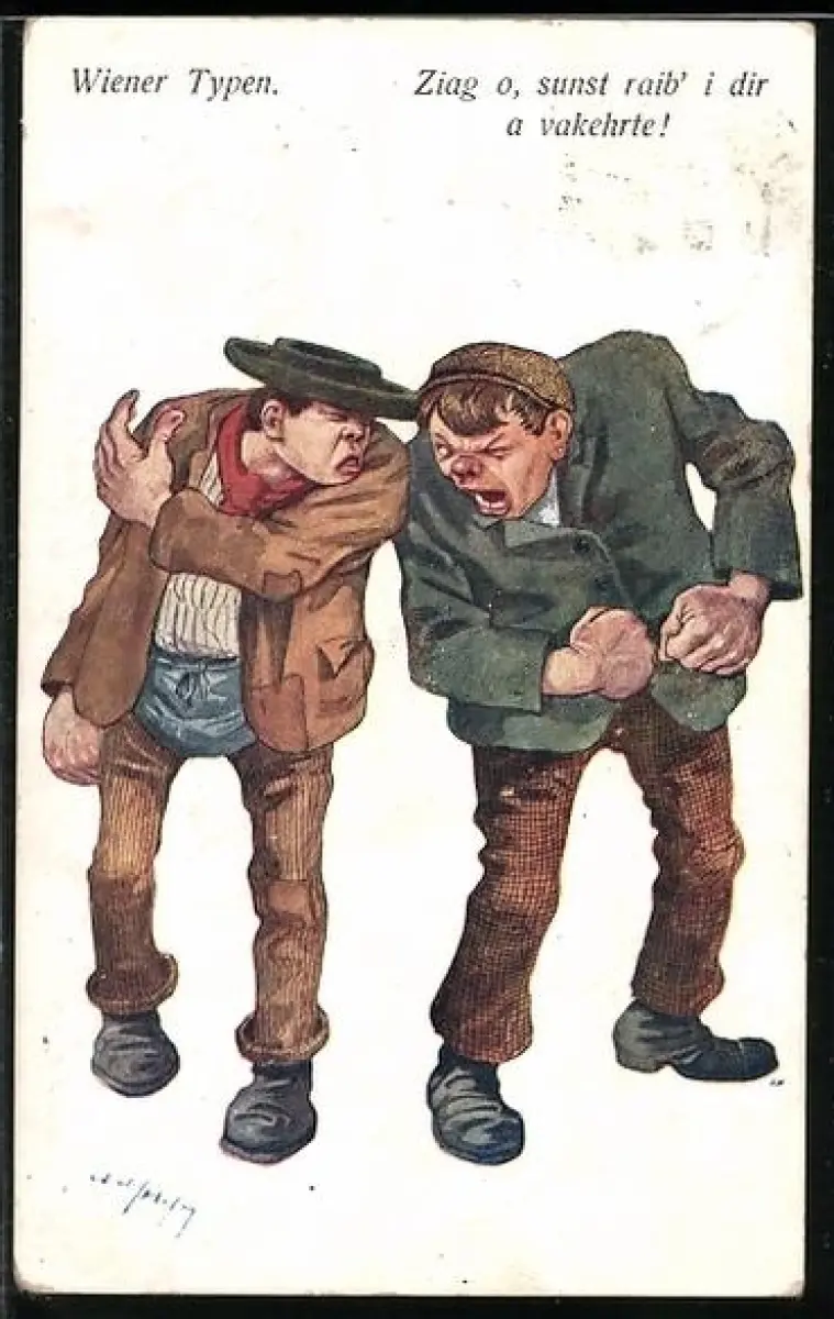Künstler-AK Carl Josef Pollak: zwei streitende Knaben