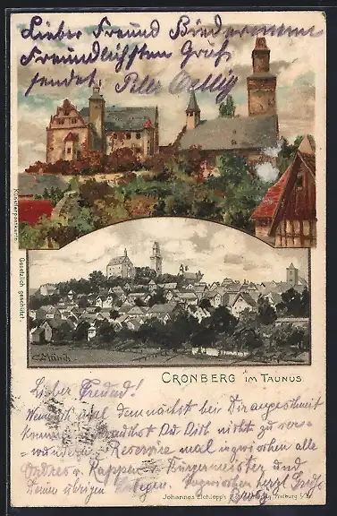 Künstler-AK Carl Münch: Cronberg im Taunus, Generalansicht, an der Burg