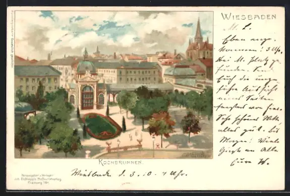 Künstler-AK Carl Münch: Wiesbaden, Partie am Kochbrunnen