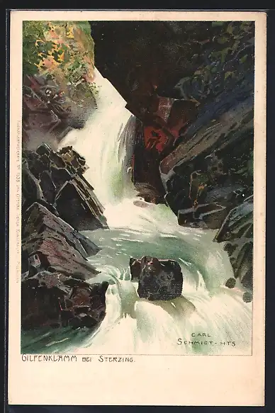 Künstler-AK Carl Schmidt: Sterzing, Gilfenklamm mit Wasserfall