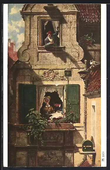 Künstler-AK Carl Spitzweg: Liebespost, Seilwinde