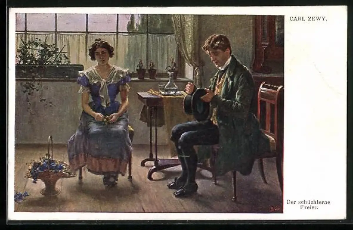 Künstler-AK Carl Zewy: Der schüchterne Freier