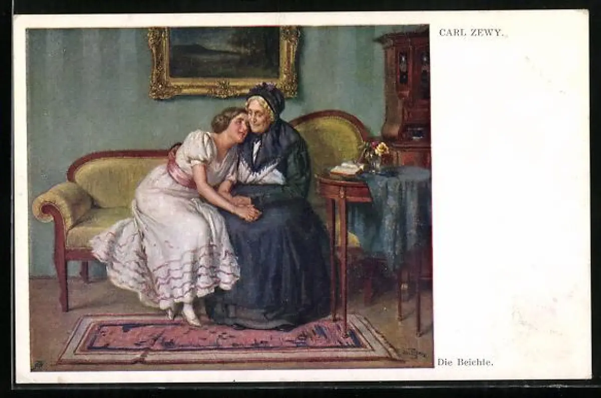 Künstler-AK Carl Zewy, Die Beichte eines jungen Fräuleins