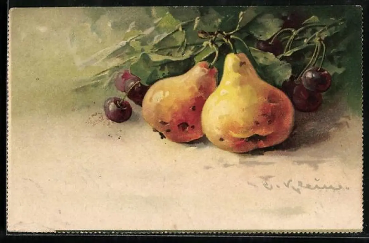 Künstler-AK Catharina Klein: Stillleben von Kirschen und Birnen