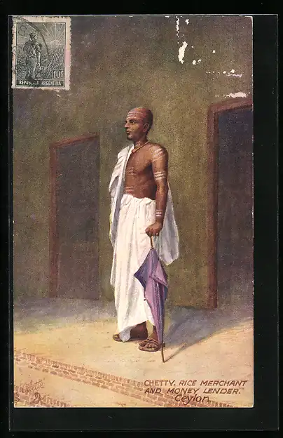 Künstler-AK Ceylon, Chetty. Rice Merchant and Money lender, Mann mit Schirm, asiatische Volkstypen