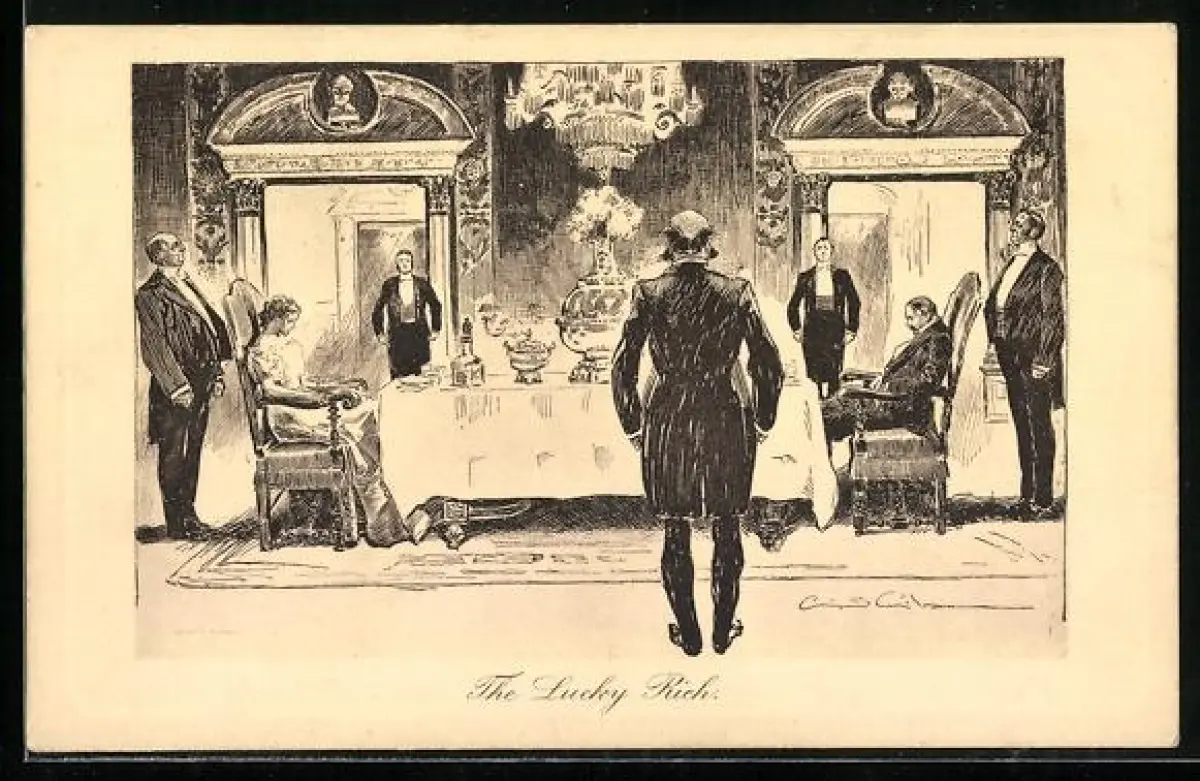 Künstler-AK Charles Dana Gibson: Reiches Paar umgeben von Bediensteten