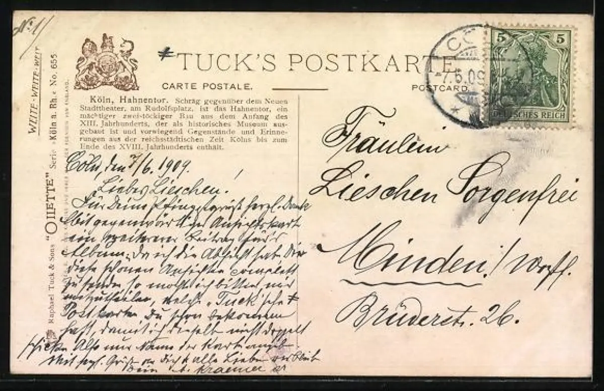 alte Ansichtskarte, gelaufen 1909, guter Zustand