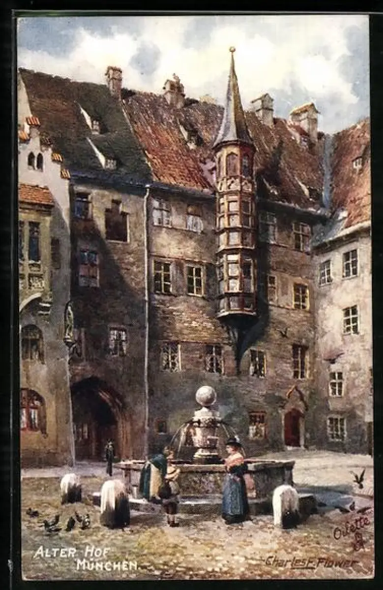 Künstler-AK Charles F. Flower: München, Alter Hof mit Brunnen