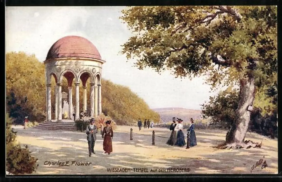 Künstler-AK Charles F. Flower: Wiesbaden, Flaneure beim Tempel auf dem Neroberg