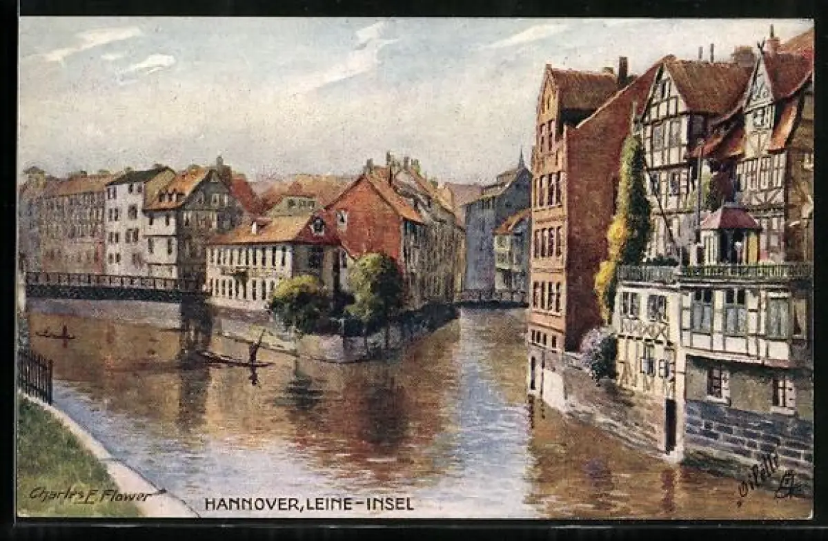 Künstler-AK Charles F.Flower: Hannover, Leine-Inseln vom Ufer aus gesehen