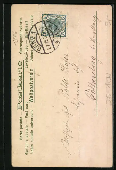 alte Ansichtskarte, gelaufen 1906, guter Zustand