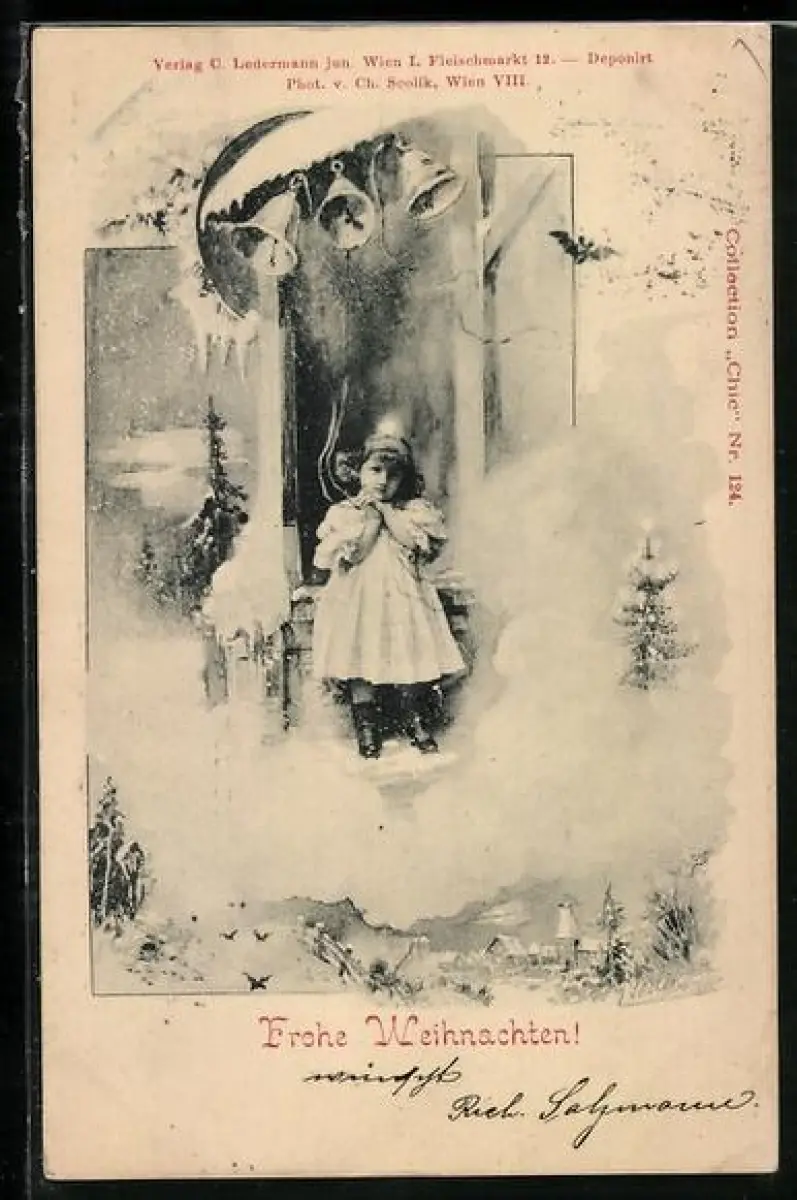 Künstler-AK Charles Scolik: ein Mädchen im Kleid mit gefalteten Händen