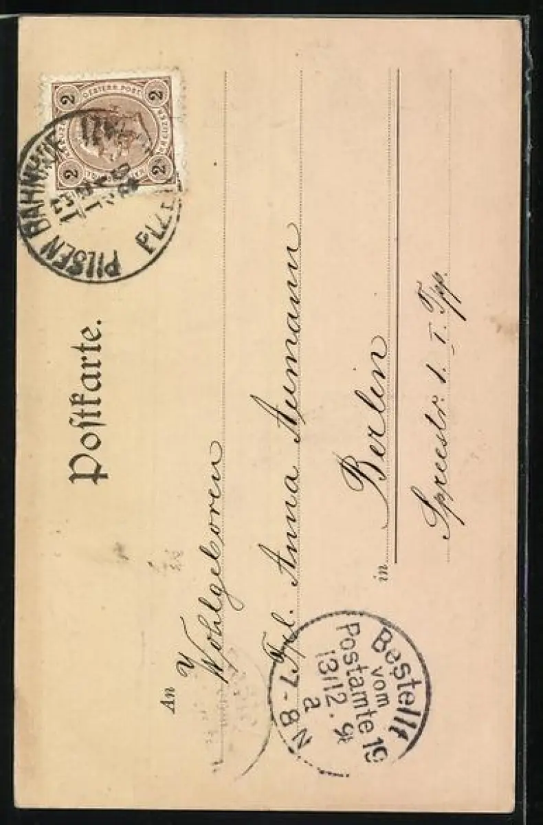 alte Ansichtskarte, gelaufen, Stempelspur, guter Zustand